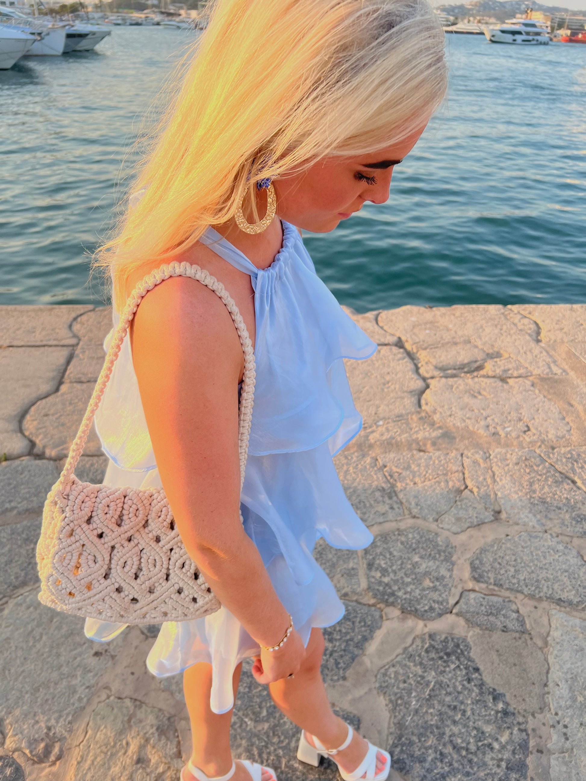 De Feline tas is jouw ultieme zomeraccessoire! Deze handgeknoopte tas in macramé-stijl straalt een bohemian en beachy vibe uit die perfect past bij zonnige dagen, vakanties en festivals. Dankzij het stevige katoenen koord en het unieke patroon is de tas niet alleen stijlvol, maar ook praktisch voor je essentials.